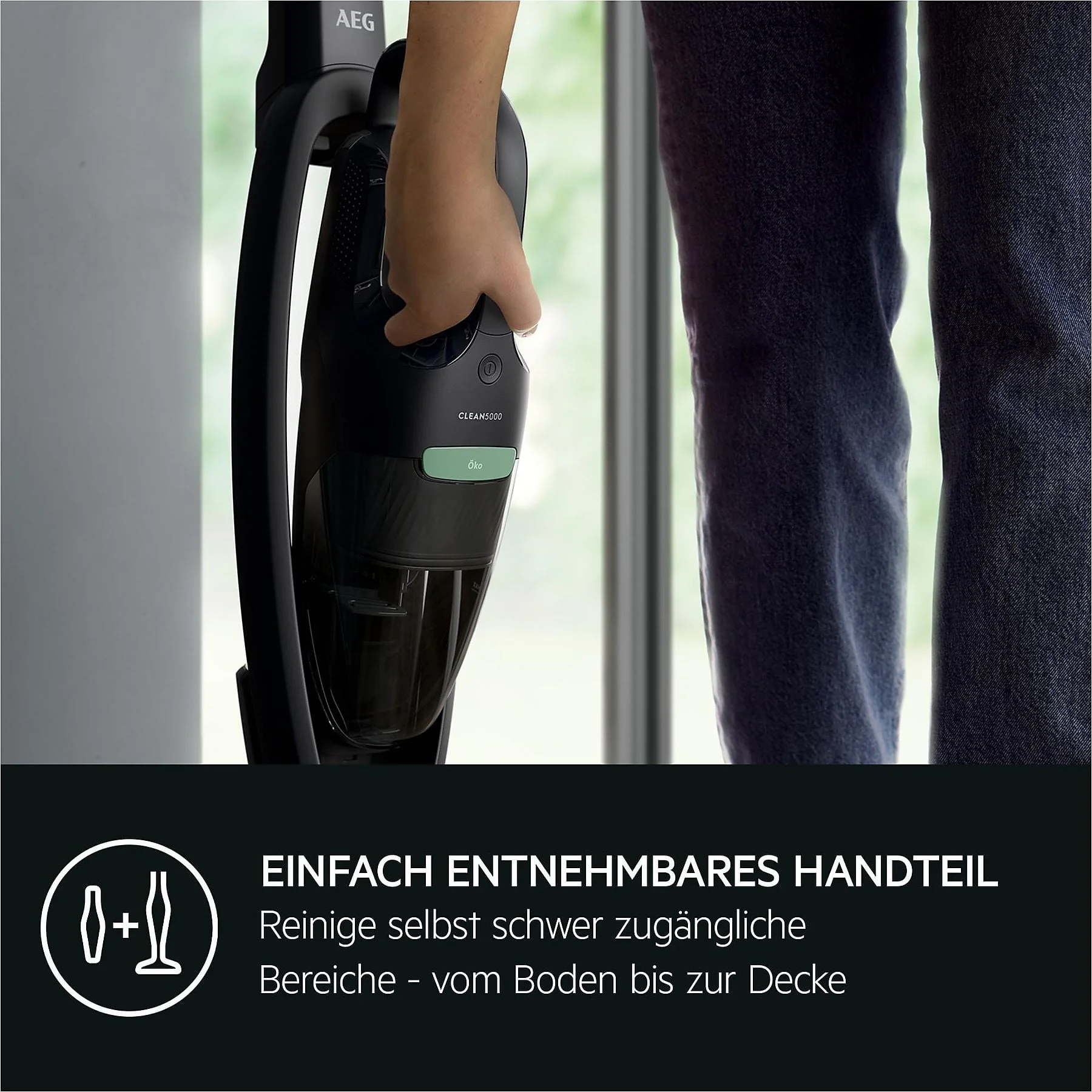 | Im Paket | AEG CLEAN 5000 ÖKO Akku-Stielsauger • abnehmbares Handteil • UltimatePower Multi-Bodendüse • Ladestation |