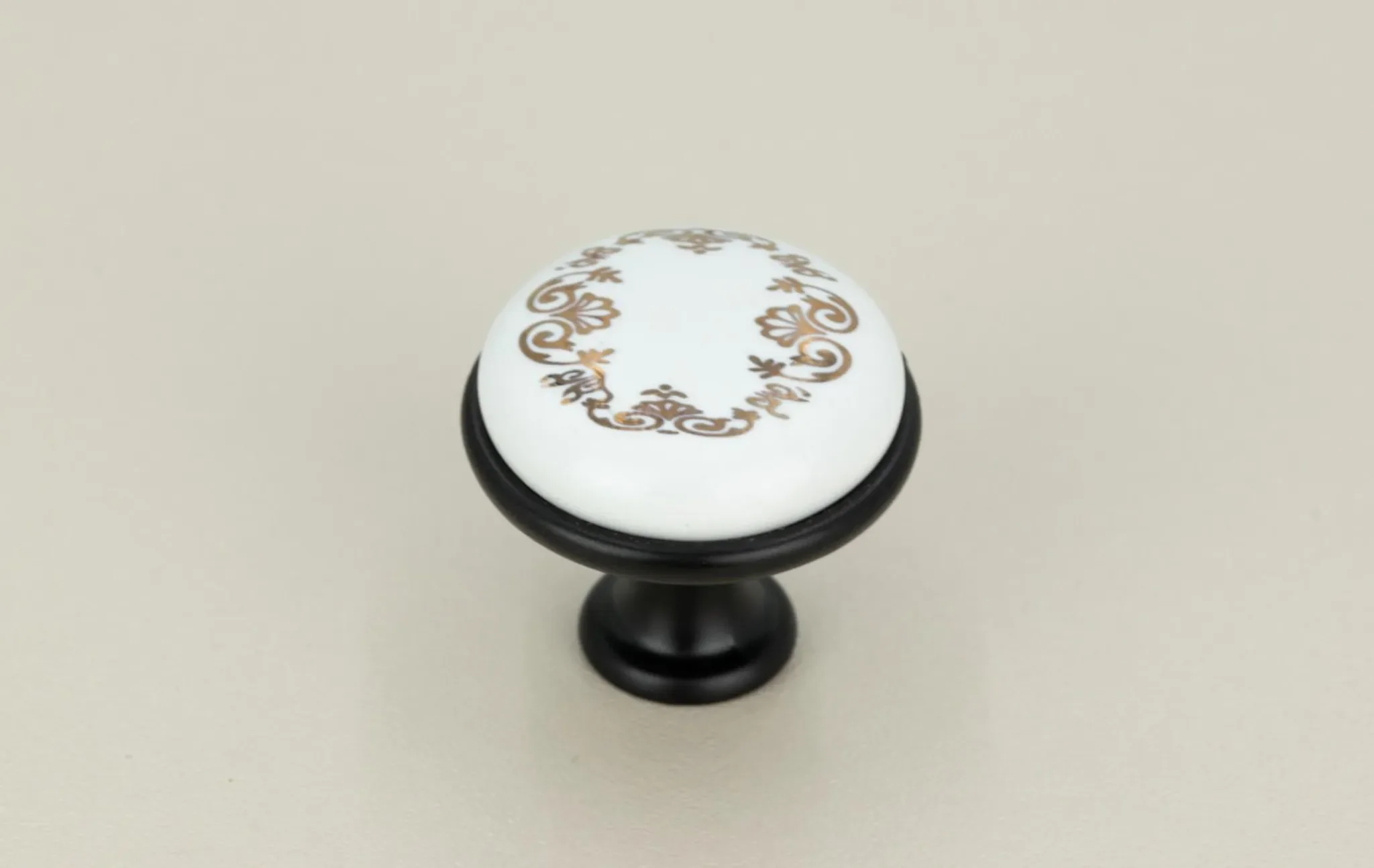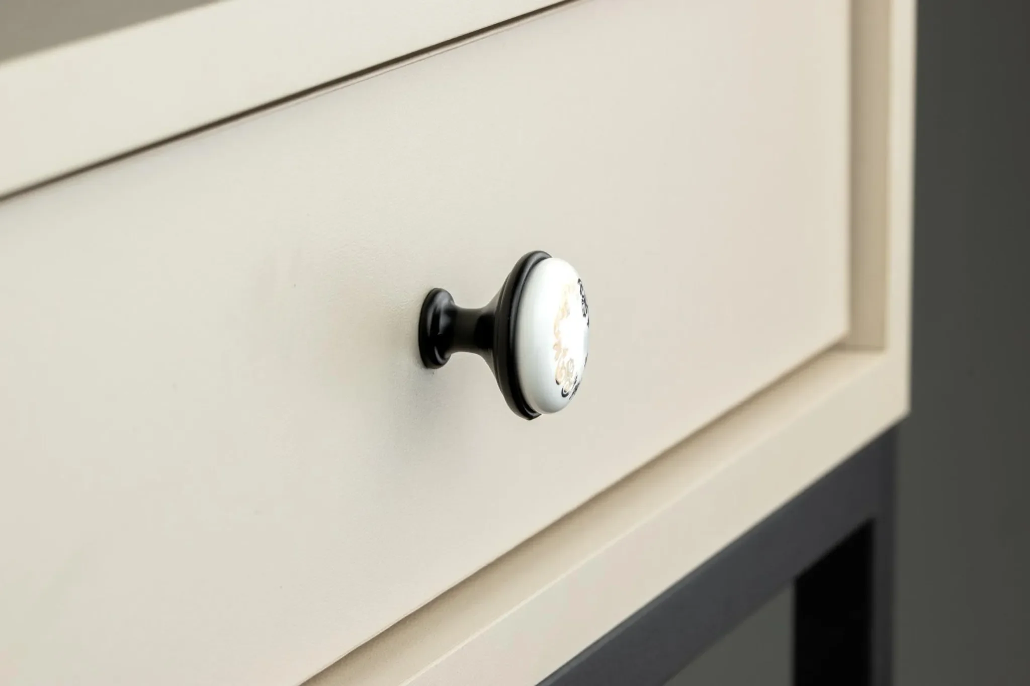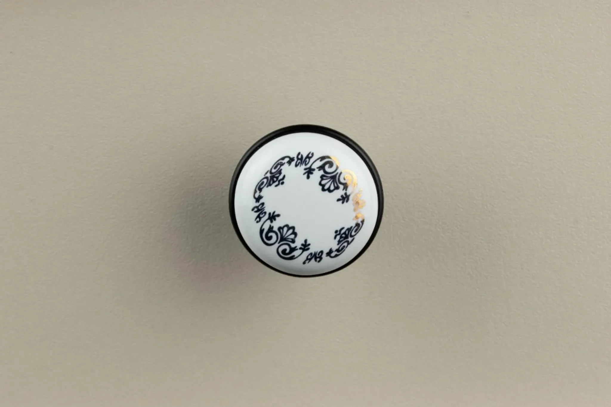 Der runde Möbelknopf im Retro-Design verbindet mattes Schwarz mit hochwertiger Keramik und Aluminium. Das zeitlose Erscheinungsbild setzt elegante Akzente und wertet Möbel im modernen wie klassischen Einrichtungsstil auf.
