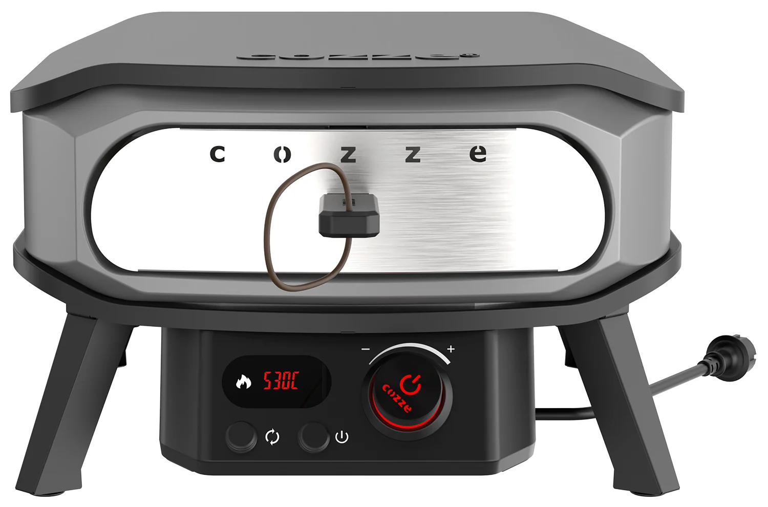 COZZE Elektrischer Pizzaofen – drehbarer Pizzastein, Digital-Thermometer, Hitzeschild, 34 cm (13″)