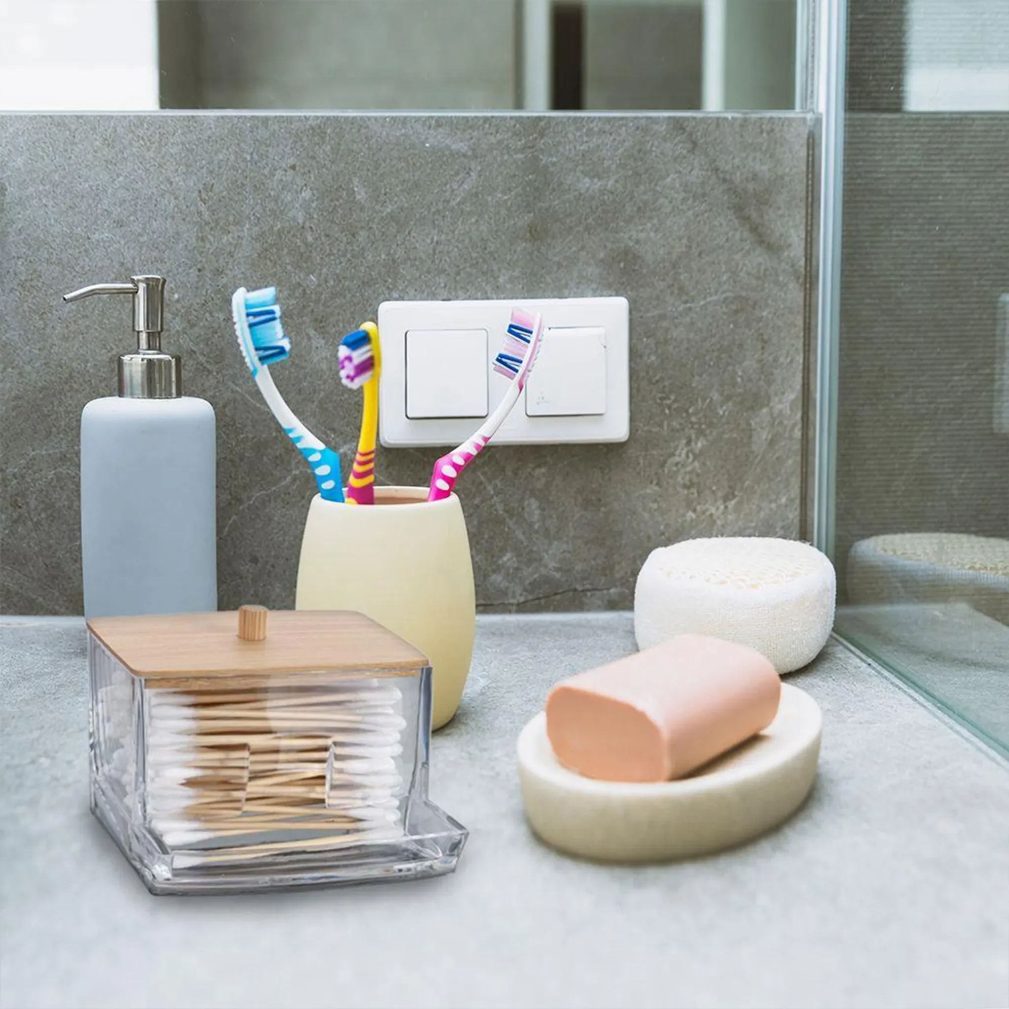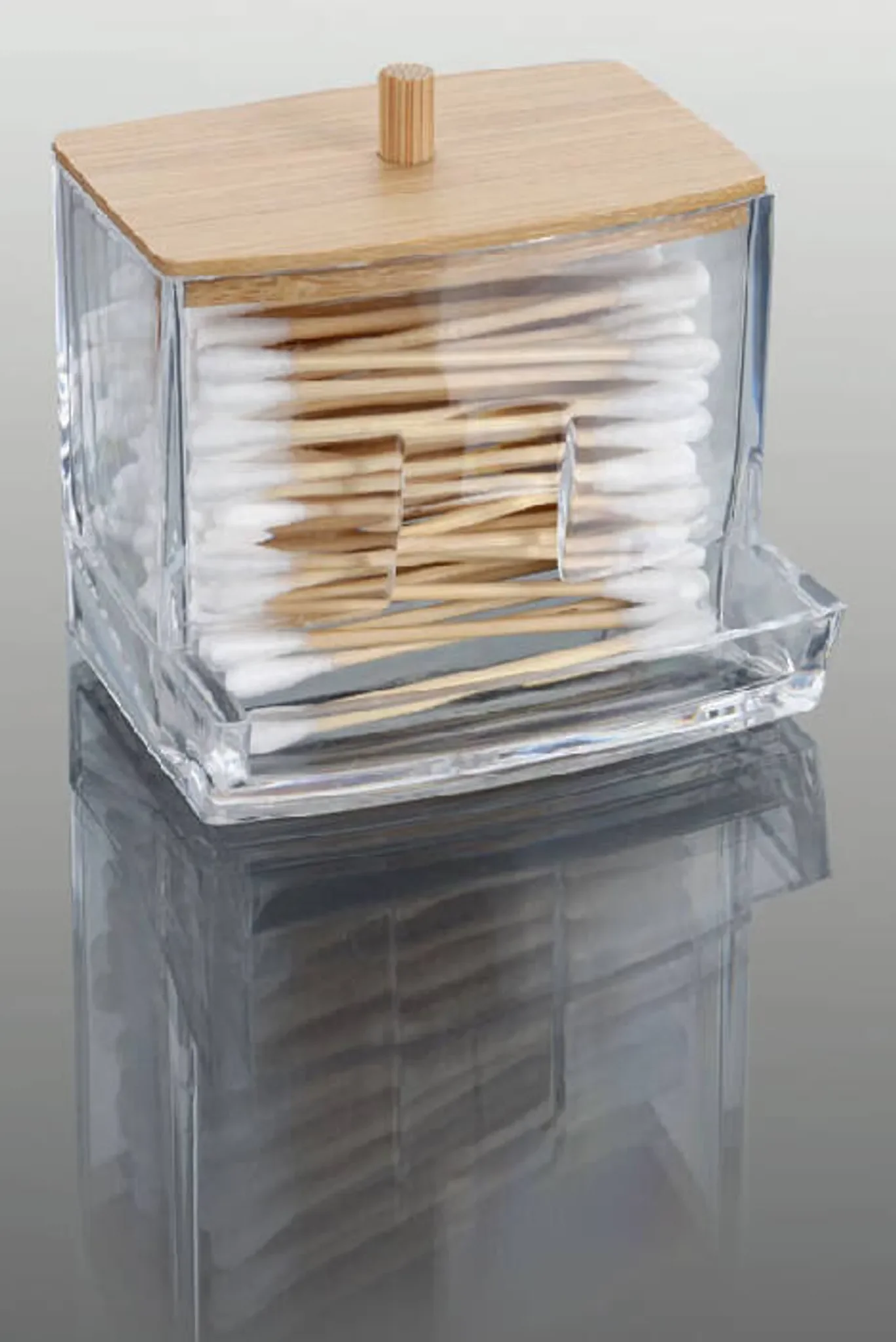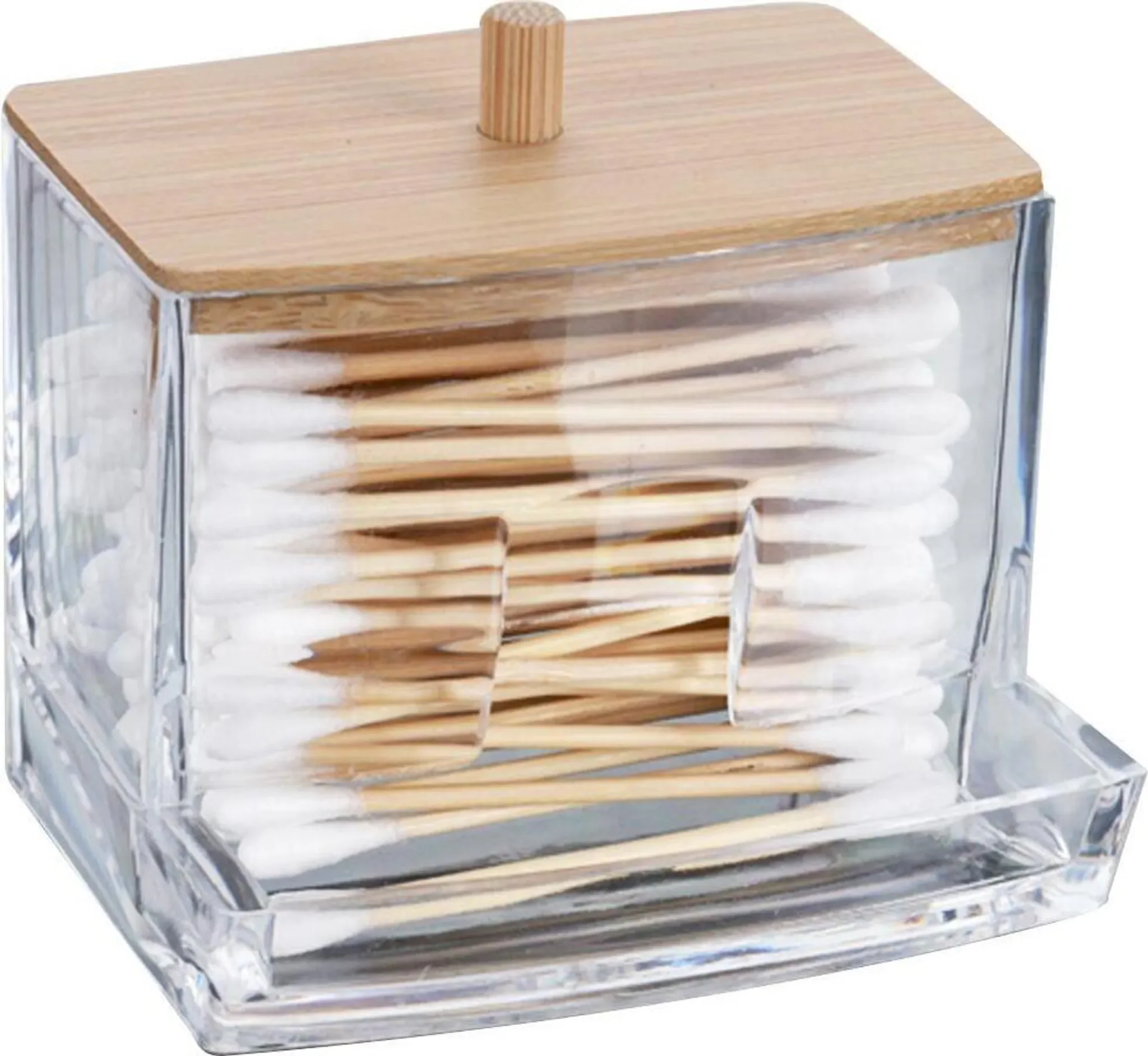Eleganza – Acryl-Wattestäbchenhalter mit Bambusdeckel