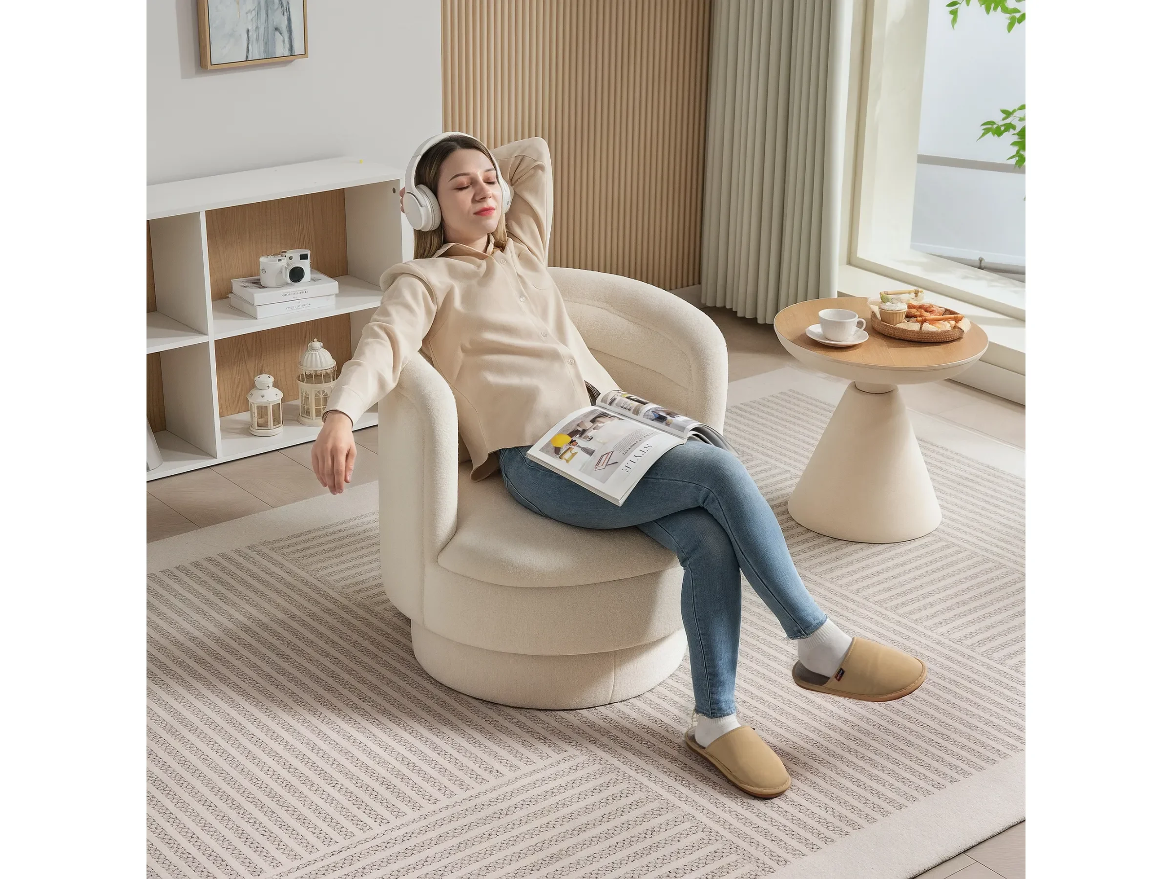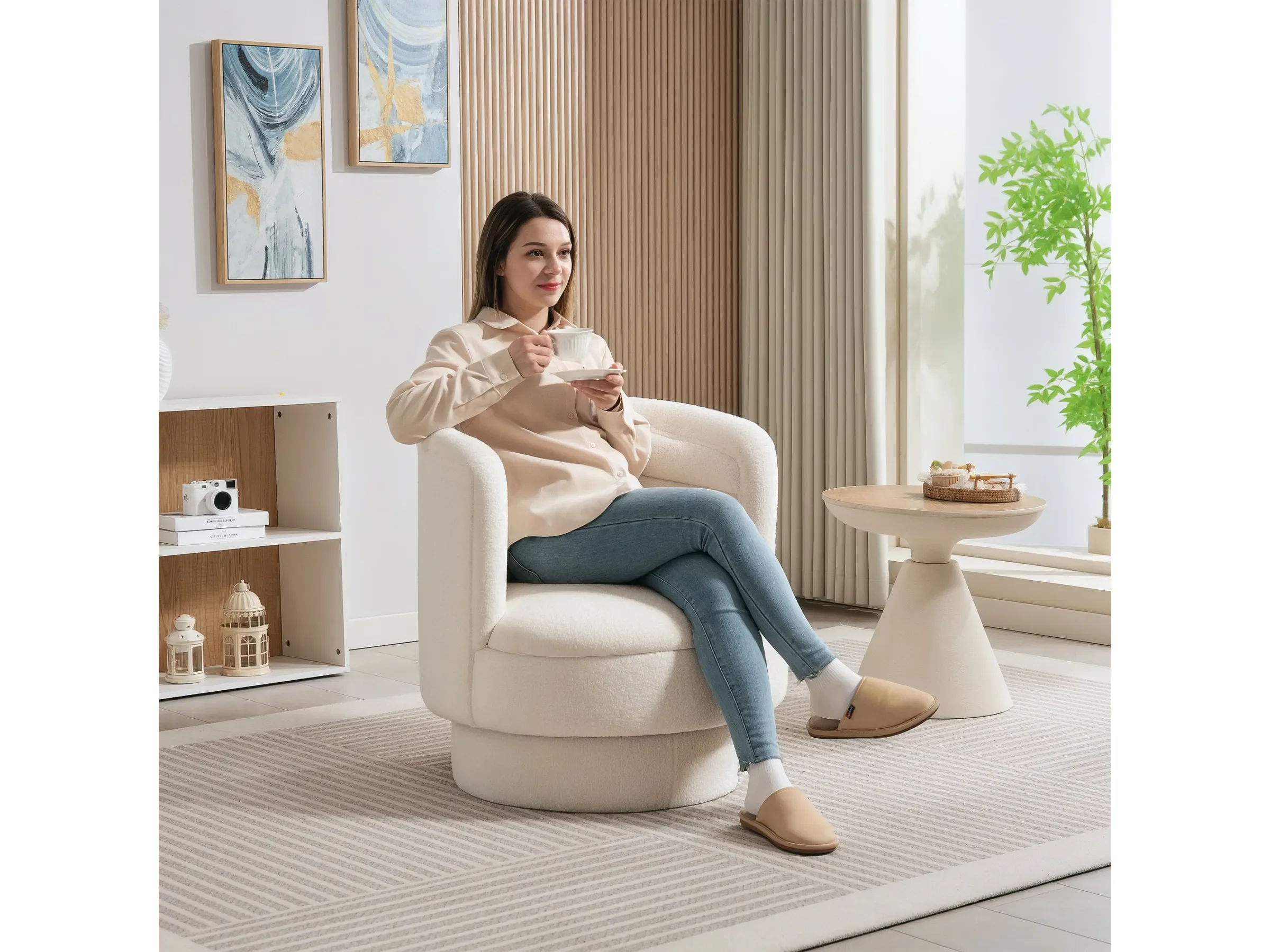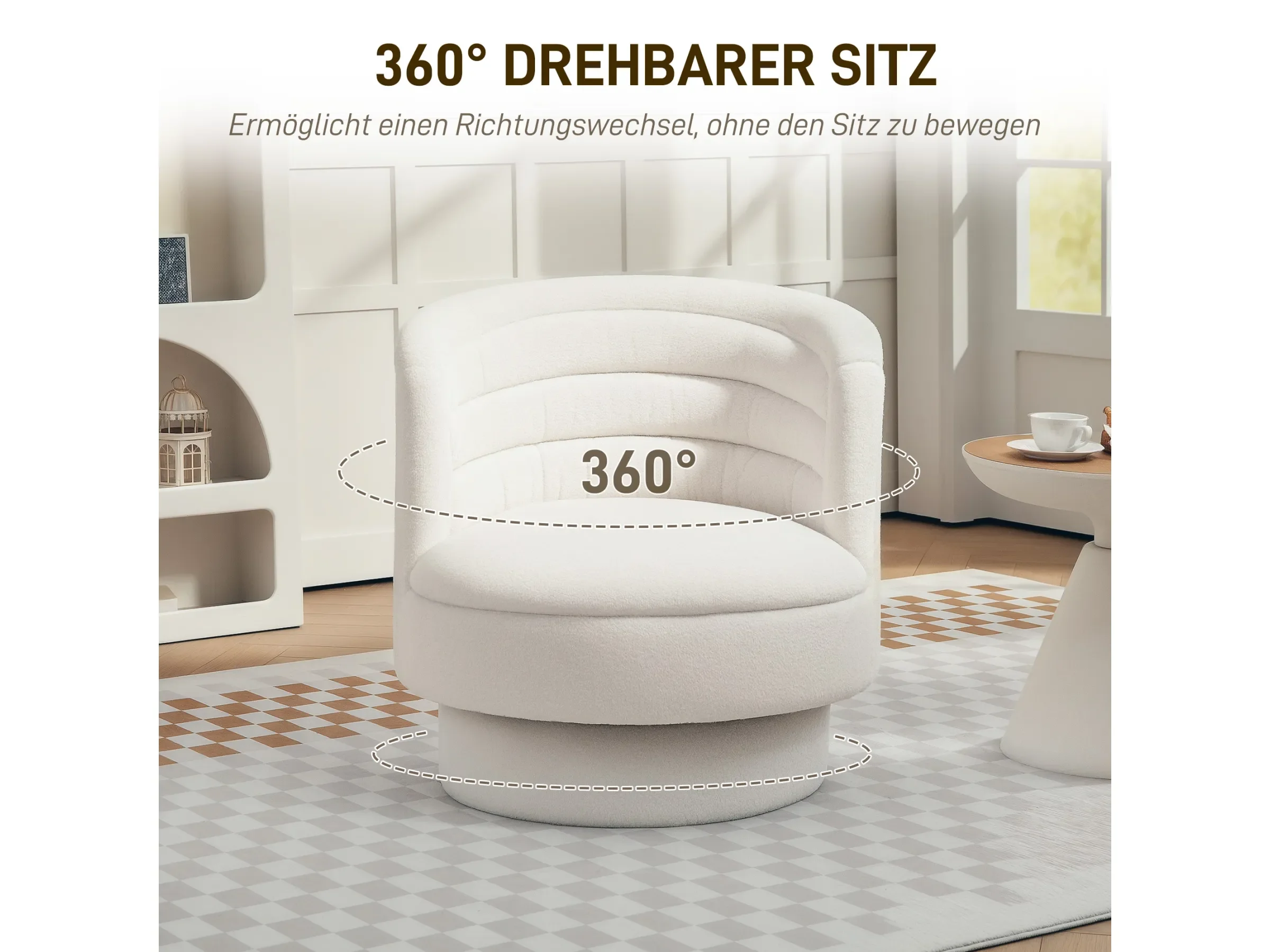 HOMCOM Drehbarer Relaxsessel mit Armlehnen – Cremeweiß
