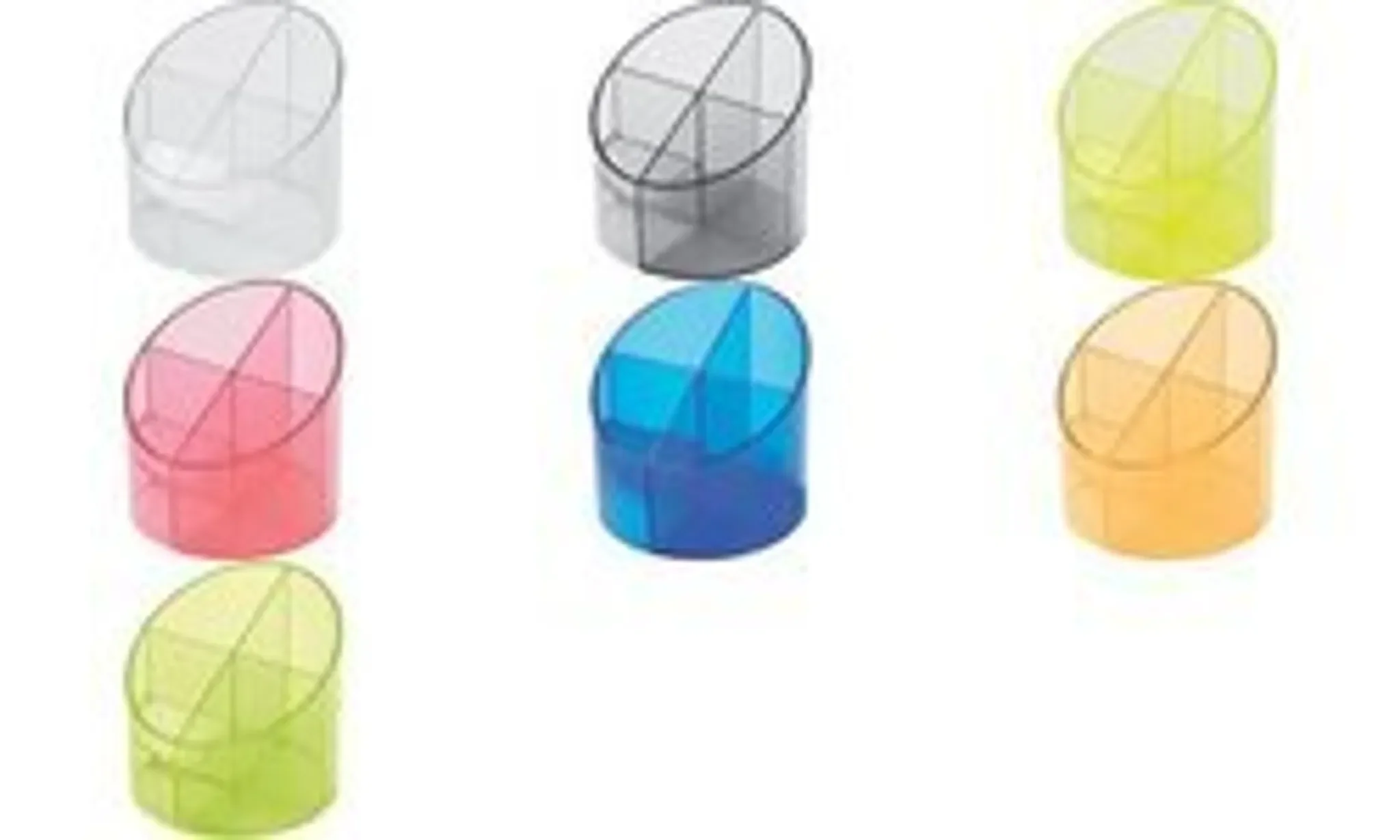 Der Multiköcher „Economy“ von Helit bietet eine praktische und kompakte Organisationslösung für den Schreibtisch. Vier unterschiedlich tiefe Fächer ermöglichen das sortierte Verstauen von Stiften, Schere, Brieföffner und weiteren Bürokleinteilen, während ein Spezialfach Kleinkram wie Büroklammern sicher bereithält.