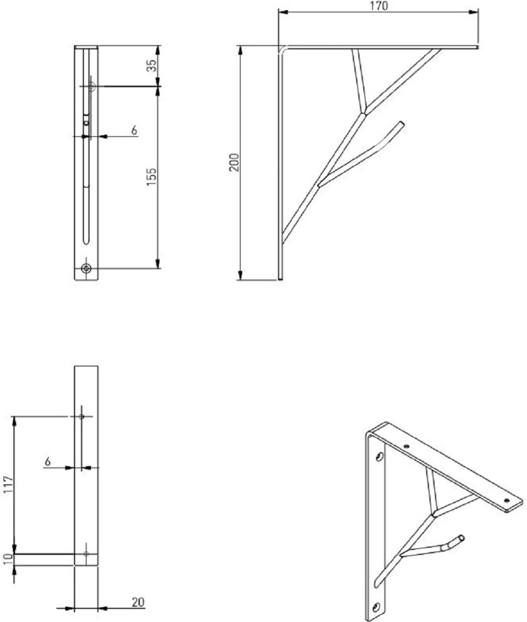 | Maße (Schenkel) | 200 × 170 mm |