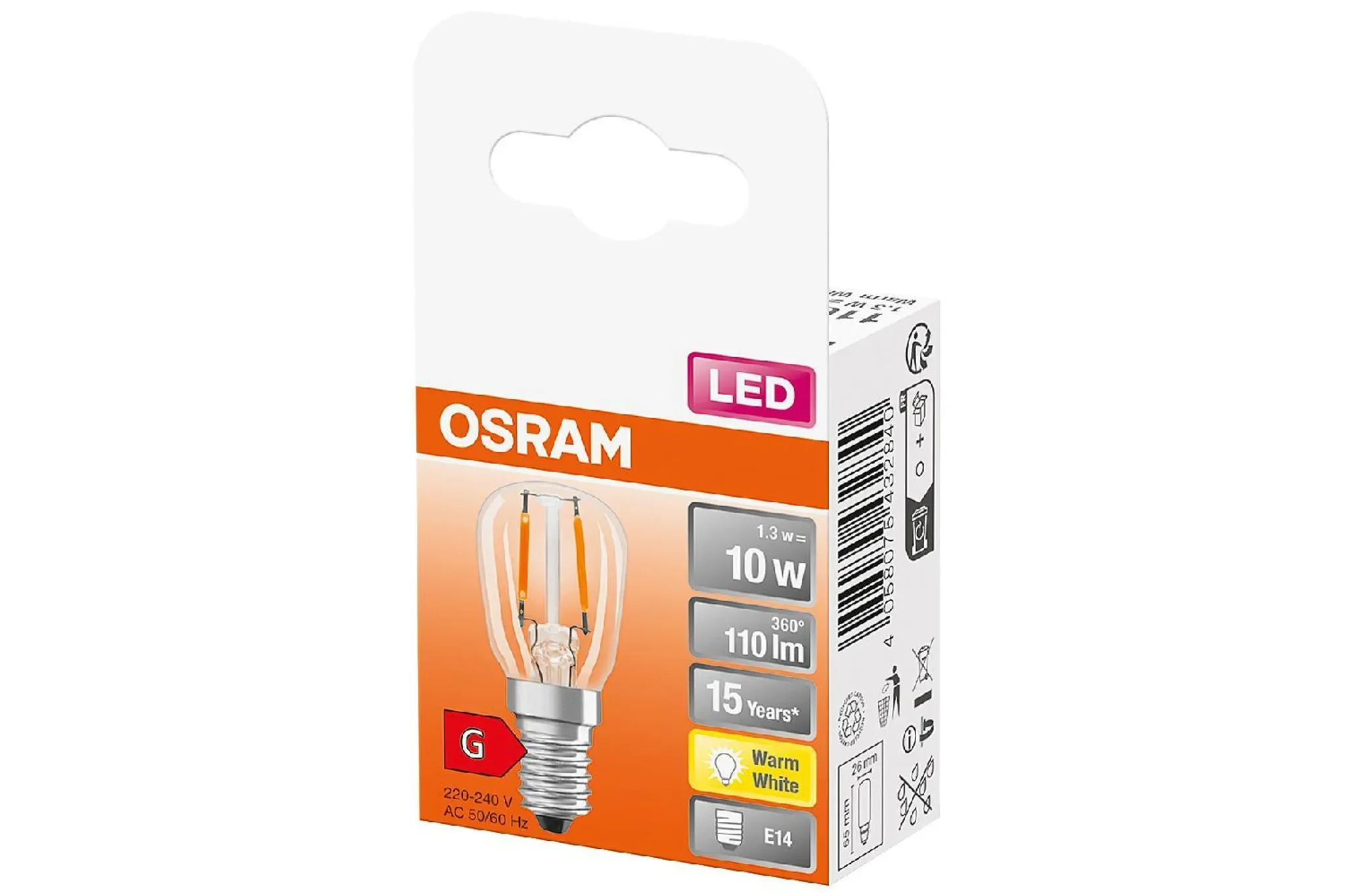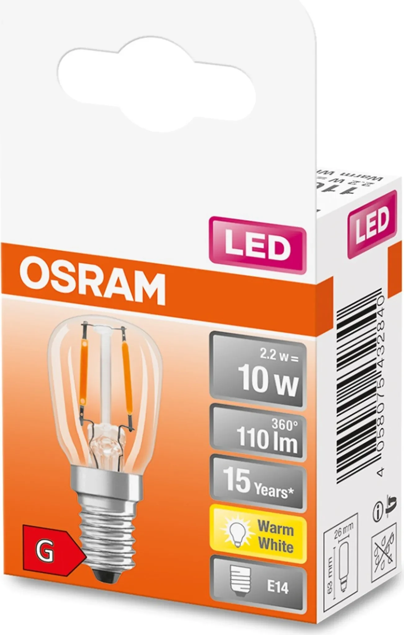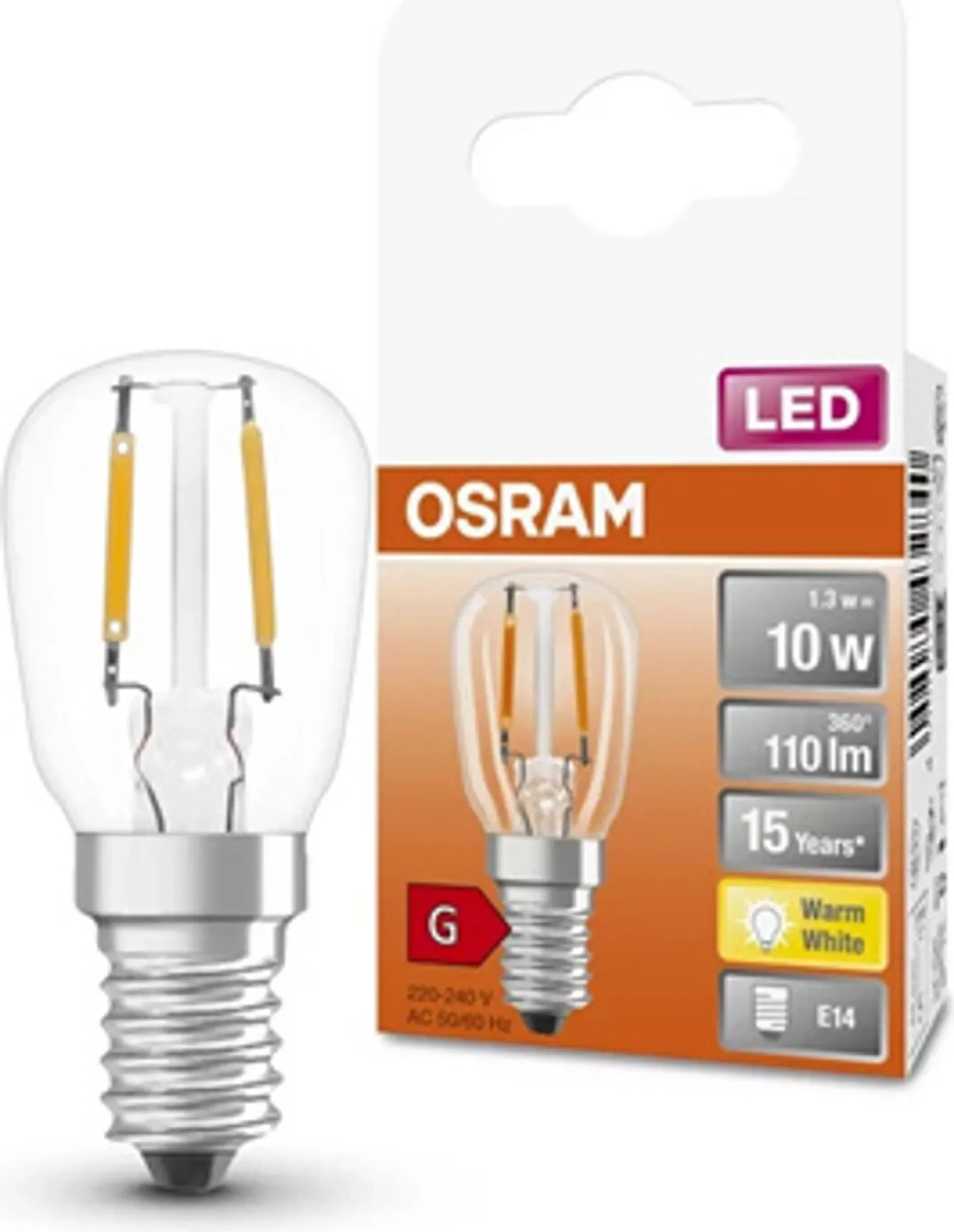 Highlights: Sehr kompakte Spezialform, ideal für Kühlschränke & kleine Leuchten, sofort volle Helligkeit, geringer Verbrauch, warmweißes Filament-Licht & lange Lebensdauer.