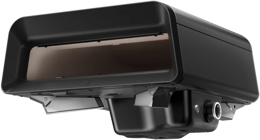 Der automatisch rotierende Pizzastein aus Cordierit sorgt für eine besonders gleichmäßige Bräunung und knusprigen Boden. Ein leistungsstarker Gusseisenbrenner in U-Form (7 kW) liefert satt Power bis zu 500°C und heizt den Backraum in ca. 20 Minuten auf 400°C vor. Integriertes Thermometer, stufenlose Gasregulierung und klappbare Standbeine runden das durchdachte Design ab.