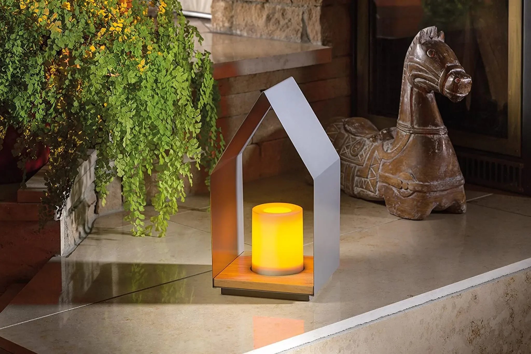 | Design | Hausform mit LED-Kerze |